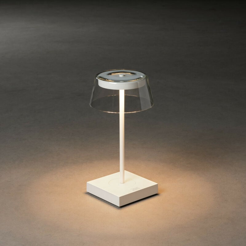 Konstsmide Scilla Scilla Lampada da Tavolo Effetto Esterno USB 2700K, 3000K Dimmerabile Bianco, IP54 | Finitura: bianco | Materiale: alluminio | Grado di protezione IP: IP54 | Altezza: 27 cm | Larghezza: 11 cm | Profondità: 11 cm | Tipo di lampada: LED integrato | Lampadina inclusa: Sì