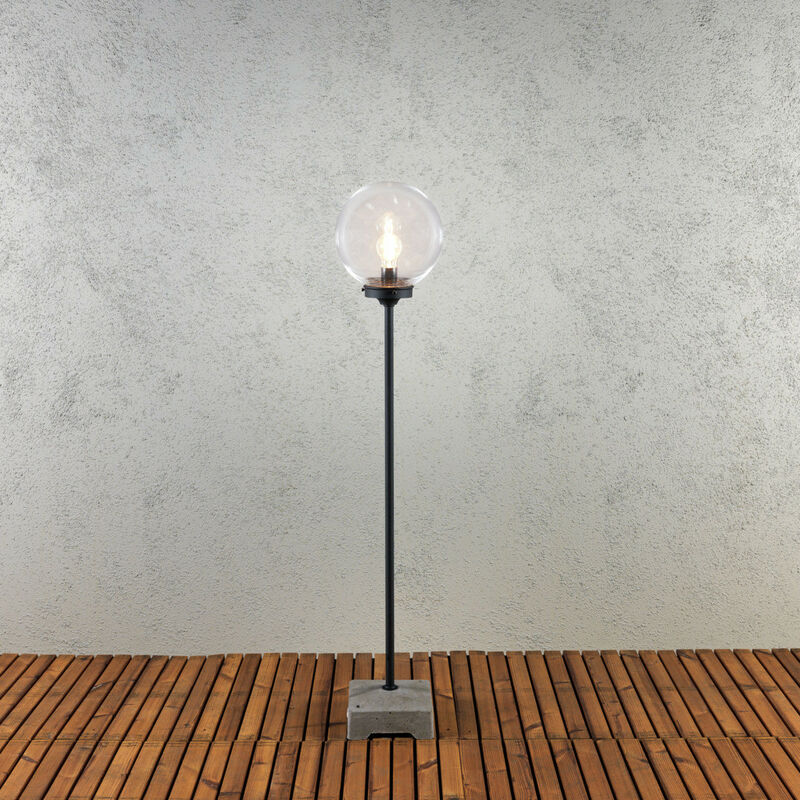 Konstsmide Lodi Lanterna da esterno moderna da salotto Clear Globe, IP44 | Finitura: nero | Materiale: alluminio | Grado di protezione IP: IP44 | Altezza: 129,5 cm | Larghezza: 25 cm | Profondità: 25 cm | Tipo di lampada: E27 | Lampadina inclusa: no