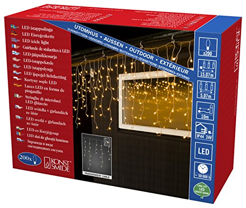 Konstsmide LED nevischio, 200 Globes bianca calda, diodi, 24 V trasformatore esterno, cavo trasparente/3672 - 103