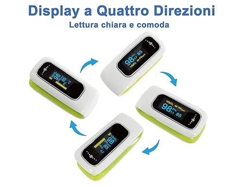 Ricaricabile con USB: Saturimetro da dito ricaricabile usb con la ricarica per 2 ore vi darà 18-20 ore di uso continuamente, un cavo USB incluso nella confezione.