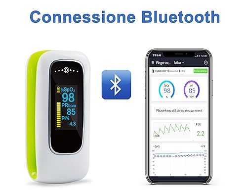 Konsung Saturimetro da Dito Ricaricabile, Pulsossimetro da Dito Bluetooth Ossimetro Professionale Certificato CE per Saturazione di Ossigeno con App Gratuita IOS e Android