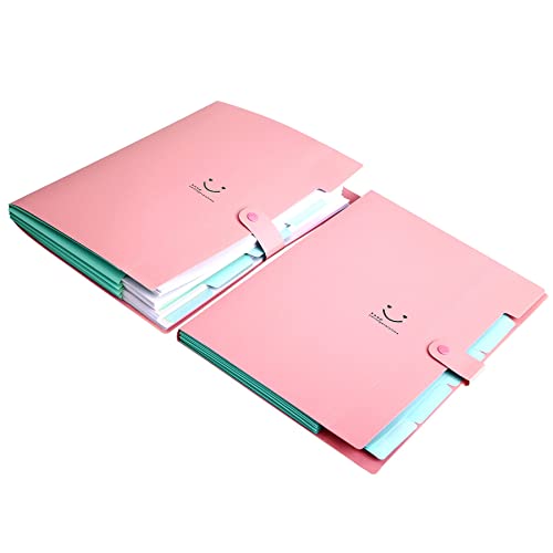 KONVINIT Cartelle Soffietto portadocumenti espandibile,Formato Protocollo A4,Chiusura con Bottone con 5 Tasche(pink)