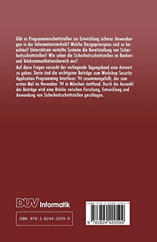 Sicherheitsschnittstellen - Konzepte, Anwendungen Und Einsatzbeispiele: Proceedings Des Workshops Security Application Programming Interfaces 94 Am 17.-18. November 1994 in München