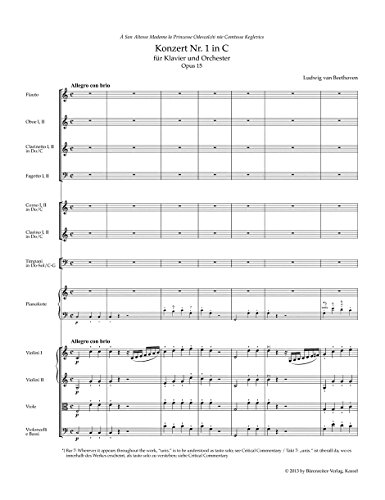 Konzert für Klavier und Orchester Nr. 1 C-Dur op. 15. Studienpartitur, Urtextausgabe