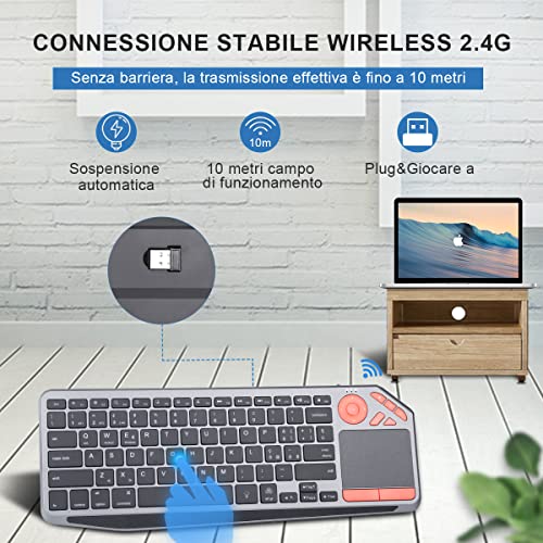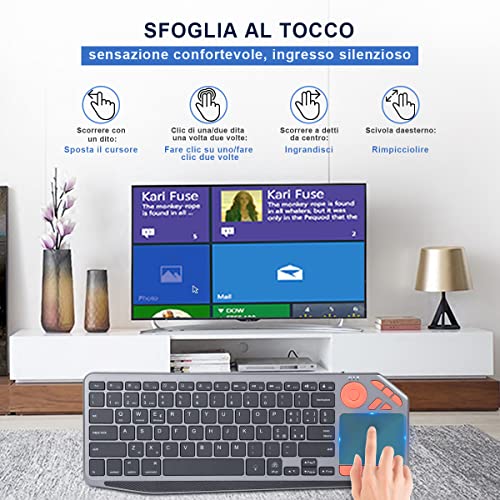KOOCHUWAH Tastiera Bluetooth 2.4G Wireless con Touchpad,Tastiera Retroilluminata 7 colori type-C ricaricabile Italiano Layout per Smart TV iOS Android Windows(Arancione)