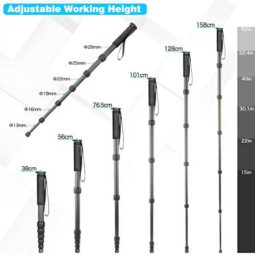 Koolehaoda Monopiede in fibra di carbonio, monopiede portatile compatto a 6 sezioni, monopiede monopiede, carico massimo 22lbs/10kg - MP286C