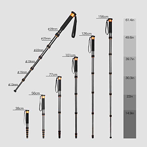 ★ Design a 6 sezioni, altezza massima estensibile di 156 cm. La dimensione pieghevole è di soli 38 cm, pesa solo 0,43 kg. Facile da trasportare e riporre.