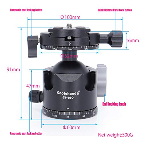 Koolehaoda Testa a sfera panoramica a basso profilo, Testa del treppiede per fotocamera panoramica con diametro grande da 45 mm Carico massimo 55 libbre / 25 kg (GT-05Q)