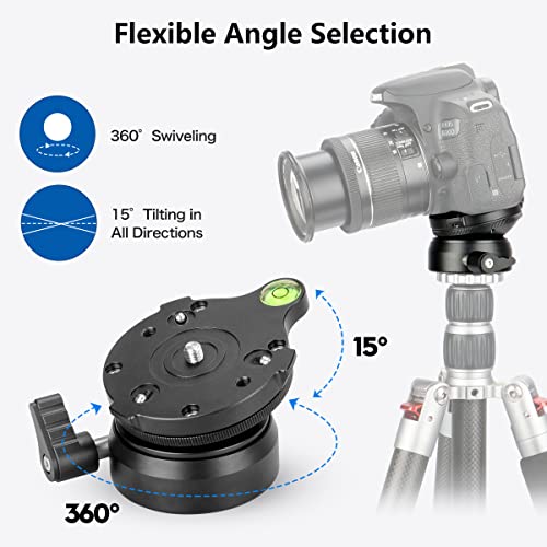 Koolehaoda Treppiede Leveling Base Base di Livellamento Mezza Sfera con Filettatura 1/4", Livella a bolla per Canon, per Nikon, per Sony DSLR Camera