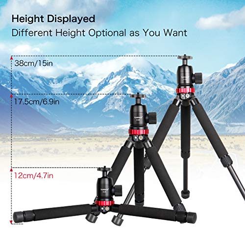 【Nuovo design】 Il mini treppiede è realizzato in robusta e durevole lega di alluminio CNC. Progettato con gambe pieghevoli e borsa per il trasporto per un comodo trasporto o stoccaggio. Le gambe del treppiede possono essere piegate a 31 cm / 12,2 pollici, pesano solo 0,53 kg / 1,17 libbre.