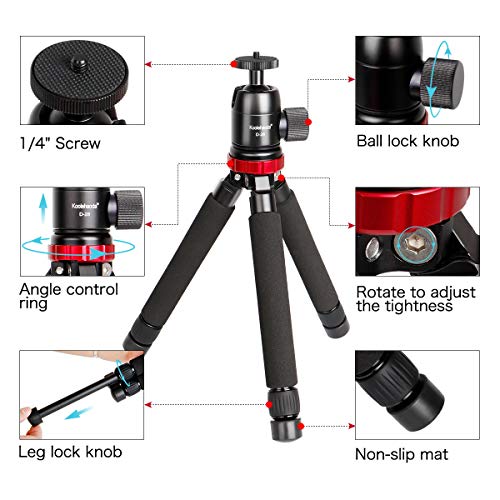 Koolehaoda Treppiede da tavolo in metallo con testa a sfera altezza massima 38 cm / 15 pollici, con attacco a vite da 1/4 "e 3/8" e gamba funzionale, carico massimo 5kg/11libbre, per fotocamera DSLR