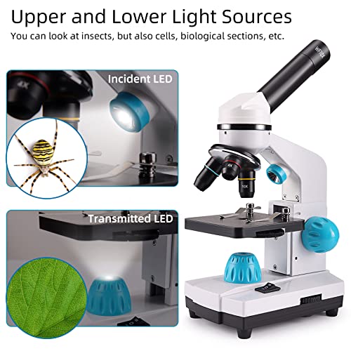 Koolertron Microscopio,40X-2000X Microscopio per Bambini Studenti Adulti,Microscopio Ottico Professionale,Microscopi composti con Vetrini per Microscopio Set per Biologico Enducation