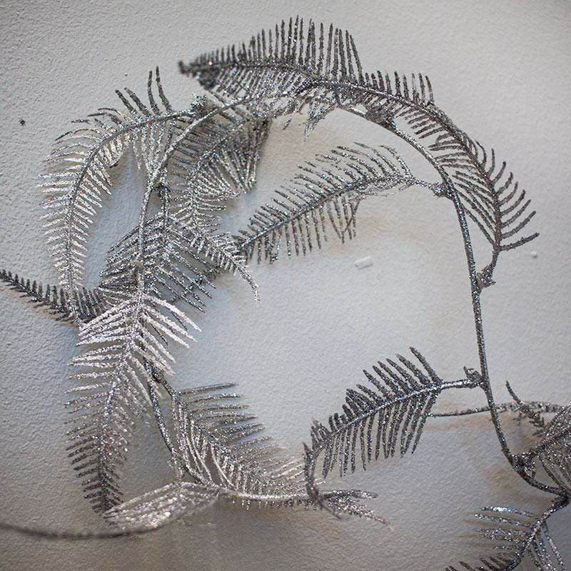 Ghirlanda Natalizia con foglie glitterate quattro modelli Dimensioni: cm. 170 Nella porta, nel camino o nel corrimano? Questa ghirlanda di foglie argentate ti aiuterà a decorare vari punti della tua casa. La potrai sistemare su di una mensola sopra il camino o seguirci il perimetro della porta. In abbinamento a una catena luminosa è una decorazione Natalizia perfetta.