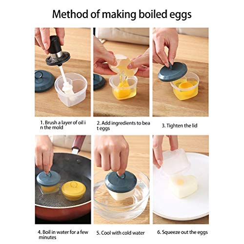 Facile da usare: spalmare un po 'd'olio sulla parete interna dello stampo per uova, quindi versare le uova nella pentola dell'acqua bollente, che è sicura e comoda da usare.