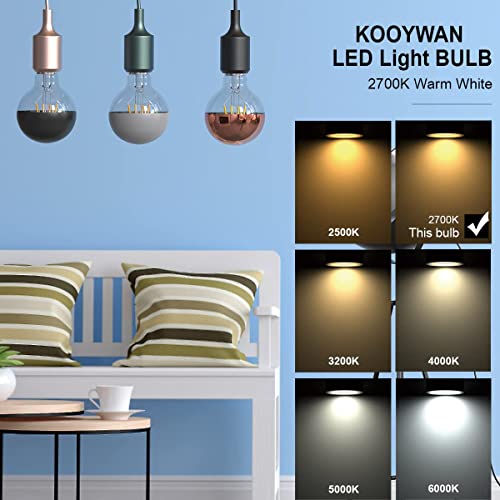 Kooywan LED G80 E27 Lampada a Filamento 6W Testa Specchio Nero 2700K Bianco Caldo Smerigliato Corona Nera Lampadina Senza Ombre Confezione 4unit