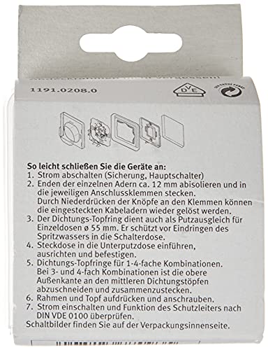 Kopp Presa di corrente con contatto di terra, resistente agli spruzzi IP 44, da incasso, 10/16 A, 250 V, serie antiumidità, bianco, 119102080