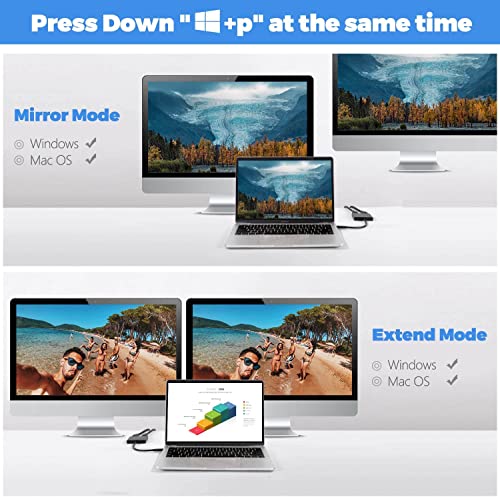 【Espansione per doppio schermo 】 Adattatore da USB-C a doppio HDMI 2 in 1. Collegare il dispositivo a due schermi esterni con uscita HDMI 4K tramite la porta USB Type-C. Ottenere 2 diverse immagini HD tramite la porta Type-C del computer.