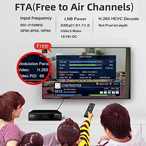 Koqit - V5H, Ricevitore satellitare H.265, HEVC, DVB2IP, FTA, decodificatore satellite DVB-S2, ricevitore satellitare TV via satellite, Internet, Meecast, WiFi, PVR, EPG, Set Top Box