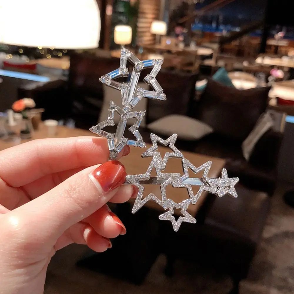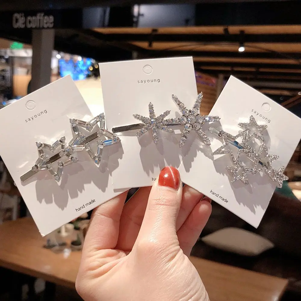 Korea Women Bling Crystal Rhinestone Star Snow Metal Hair Clips Barrette Hairpin Bobby Pin Jewelry Hair Accessories