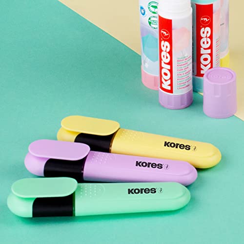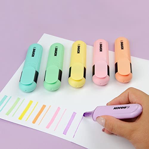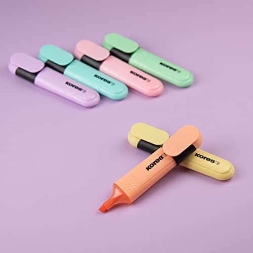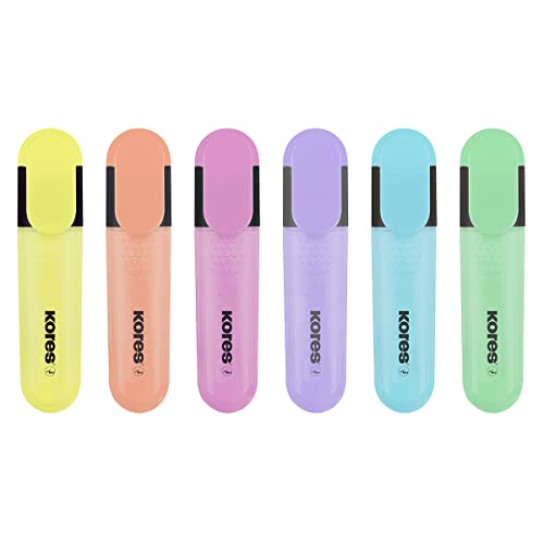Kores - Bright Liner Plus: Evidenziatore dai Colori Pastello, Punta a Scalpello e Inchiostro a Base d'Acqua, Forma Ergonomica, Adatti per la Scuola e l'Ufficio, Set da 6 Colori Assortiti