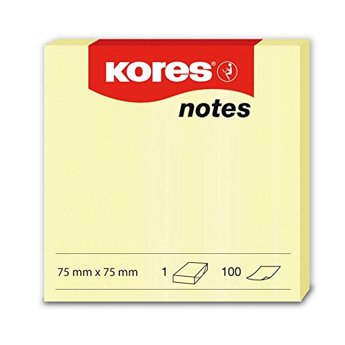 Kores - Foglietti Adesivi Gialli, Note Adesive per Scuola e Ufficio, 75 x 75 mm, Confezione da 12 Blocchetto con 100 Fogli Ciascuno
