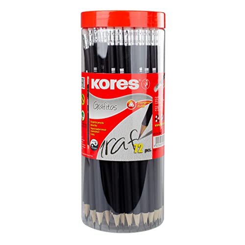 Kores - Grafitos: Matite di Grafite HB con Mina Morbida e Gomma da Cancellare, Forma Triangonale Ergonomica, Confezione da 72