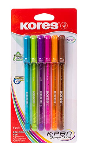 Kores kp39826 K-pen K1 USA E GETTA penna a sfera con fusto trasparente e il tappo colorato, 0.7 mm, 6 colori, 12 Pezzi