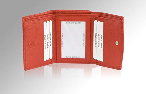 PICCOLO E COMPATTO - Il nostro lussuoso portafoglio da donna in pelle rossa realizzato in pelle testurizzata di alta qualità offre spazio sufficiente per conservare monete, contanti, carte di debito/credito e altri oggetti essenziali di tutti i giorni in un unico posto beneficiando di essere fissati con una robusta chiusura a bottone in metallo. È un eccellente titolare della carta, custode del cambio di ricambio e difensore del denaro e dell'identità.