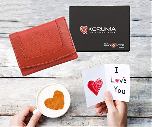 KORUMA Piccolo portafoglio RFID da donna con chiusura lampo per portamonete - 100% certificato senza contatto Oyster carta di credito - Confezione regalo kuk-10, Rosso, one, Portafoglio classico Tri-fold
