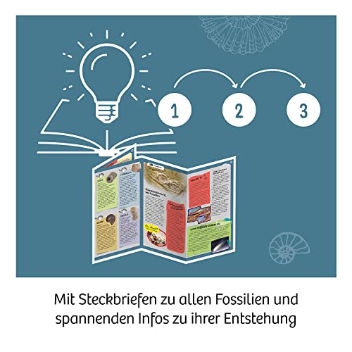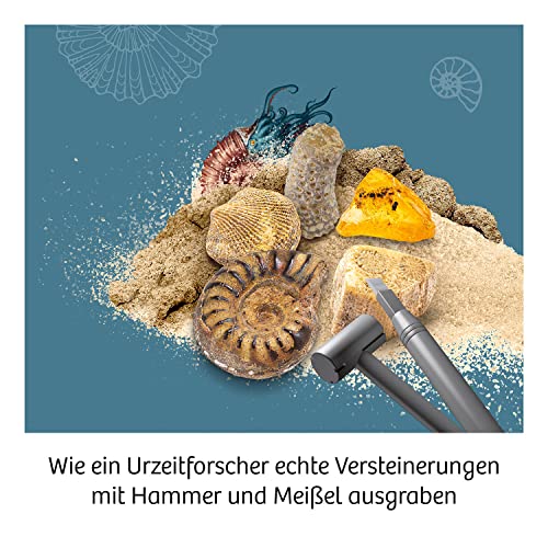 Scavare, scoprire, stupire - semplicemente incredibile che fossili veri, come ammonite, corallo roccioso, guscio di atripa o Copal si nascondano in questo blocco di gesso
