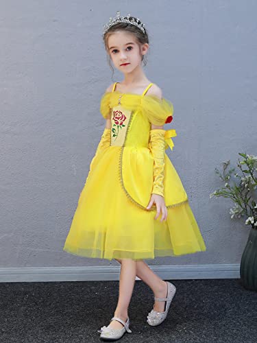 Kosplay Principessa Belle Costume Bambina Vestito da La Bella e la Bestia con Accessori Costume da Halloween Carnevale Cosplay Compleanno Natale Festa Vestito Fantasia