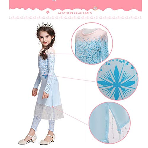 ❤【 Materiale superiore 】 Costume da principessa ELSA per ragazza realizzato in poliestere e tulle di qualità superiore, tessuto non irritante per la pelle, sensazione di mani morbide. Comodo da indossare in primavera, estate, autunno e inverno per tutte le stagioni.