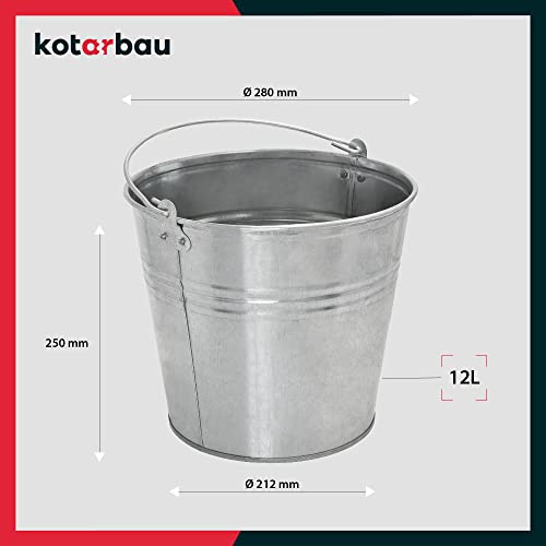 KOTARBAU - Secchio in Zinco 12L con Manico Secchio Acciaio Zincato per Acqua Giardino Lavori di Costruzione Rifiuti e Cucina Diverse Capacità Secchio Metallo Secchio Muratore
