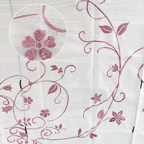 Kou-Deco - Tenda a pacchetto in voile trasparente “Raffrollo”, con ricamo fiorito, per decorare finestre (confezione con 1 articolo), Violet, 100x140cm