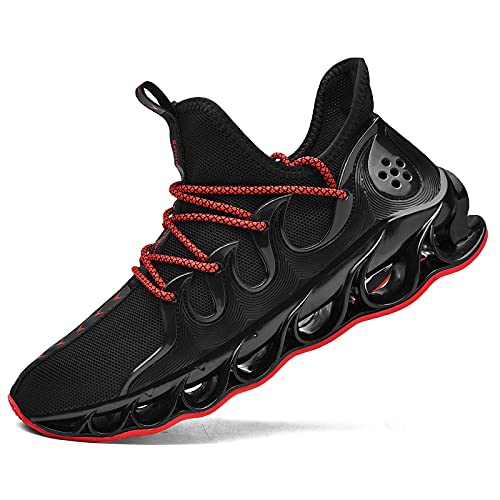 Kouani Scarpe da ginnastica da uomo, in rete, peso leggero, palestra, atletica, fitness, Nero e rosso, 43.5 EU