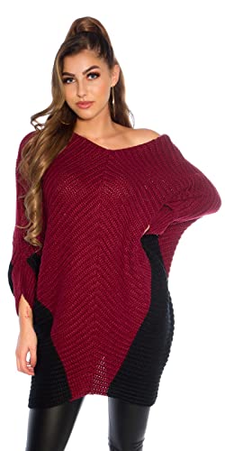Koucla Mega Oversize - Maglione a maglia grossa, con scollo a V, bordeaux, Taglia unica