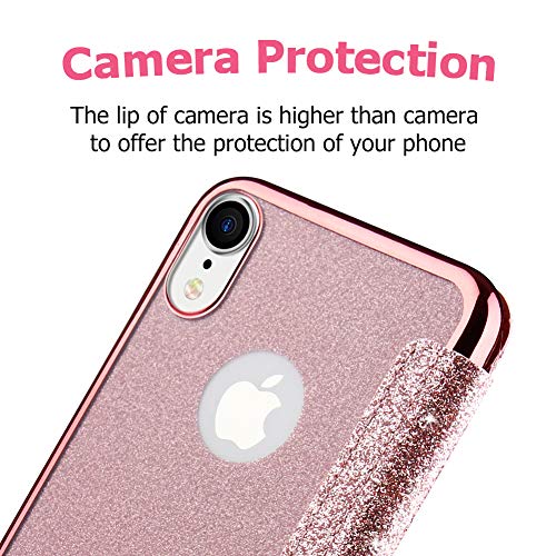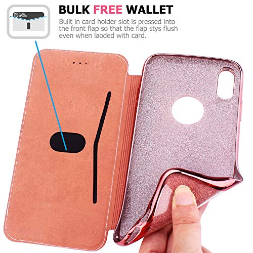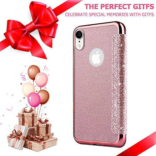 KOUYI Cover per iPhone XR, Custodia Lucciante con Brillantini Glitters Design Flip Caso Custodia in Pelle PU con Interno TPU Protettiva Cover per Apple iPhone XR 6,1 Pollici (Rosa)