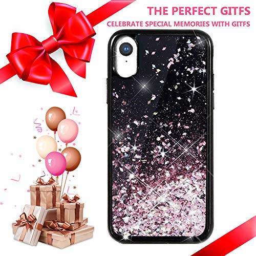 KOUYI Cover iPhone XR, 3D Glitter Nero Liquido Morbido Silicone TPU Bumper Protezione Cover,Moda 3D Cute Fluttuante Quicksand Anti-graffio Slim Custodia per Apple iPhone XR 6.1 Pollice(Oro Rosa)