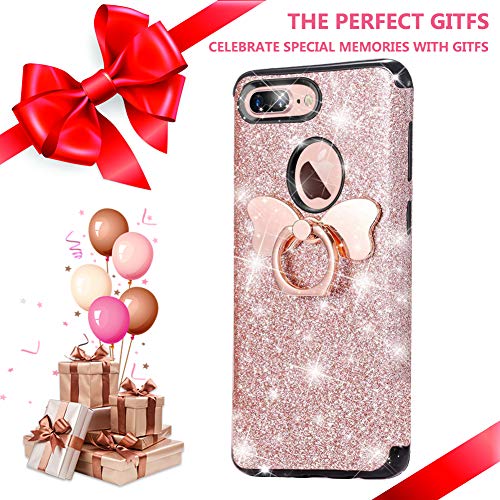 KOUYI Cover iPhone 8/7 Plus, [3 in 1 Protezione da Silicone Molle TPU e Duro PC] Glitter Protezione Cover,Bling Cover Protettiva Case Custodia per Apple iPhone 8 Plus/iPhone 7 Plus (Rosa)
