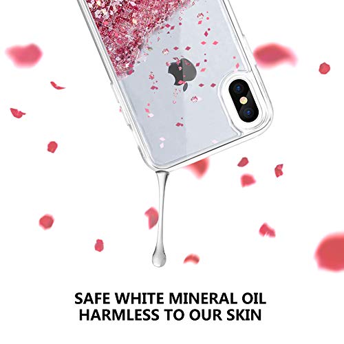 KOUYI Cover iPhone XS/X, 3D Glitter Chiaro Liquido Silicone TPU Bumper Telefoni Telefono Cellulari Protezione Cover,3D Bling Protettiva Case Custodia per Apple iPhone XS/iPhone X (Oro Rosa)