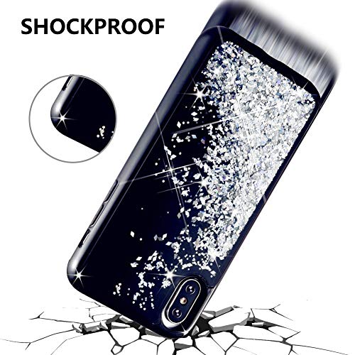 KOUYI Cover iPhone XS/X, 3D Glitter Liquido Silicone TPU Bumper Telefono Cellulari Smartphone Protezione Cover,3D Bling Protettiva Case Custodia per Apple iPhone XS/iPhone X (Argento)