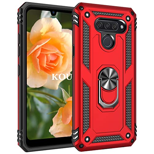 KOUYI Cover per LG K50/Q60, Custodia Antiurto Grado Militare 360° Girevole Regolabile Ring Armor Bumper TPU Case Magnetica Supporto Silicone Custodie Protettiva per LG K50/Q60 (Rosso)