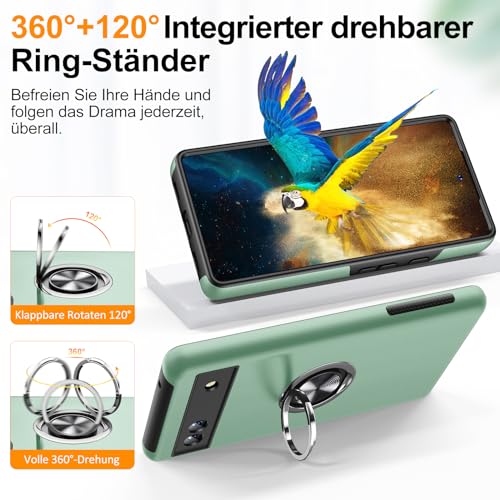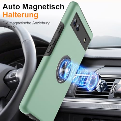 ✔【Stabile supporto ad anello in metallo a 360°】 Compatibile con la custodia Goggle Pixel 6A 5G dispone di un supporto posteriore invisibile, ruota di 360° per soddisfare i requisiti di visibilità in qualsiasi posizione. La custodia ha una parte magnetica in metallo integrata che può essere fissata direttamente al supporto magnetico per auto. Soddisfa le vostre esigenze per guardare video in qualsiasi angolazione.