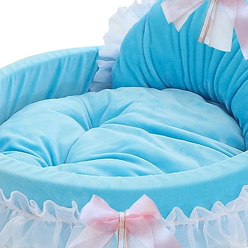 Kowaku Letto per cani Morbido peluche Portatile Antiscivolo Cuccia per cuccioli Decorazioni in pizzo Rimovibile e lavabile Inverno Caldo Nido Cuccia Cuccia, Blu, l