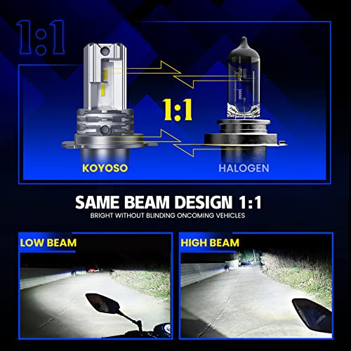 DESIGN ALOGENO 1:1: KOYOSO LED H4 è progettato wireless, senza driver o connettore esterno, direttamente collegato, facile da installare, plug and play, con un design di dimensioni 1:1 rispetto alle lampade alogene, e può essere facilmente installato in pochi minuti.