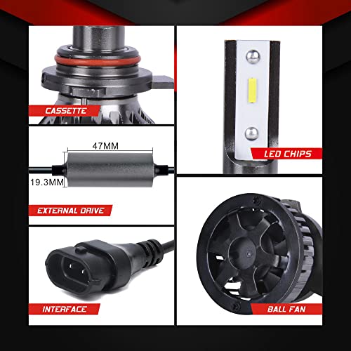 KOYOSO Lampadine 9012/HIR2 LED 10000LM, Kit Lampada Sostituzione per Alogena Lampade e Xenon Luci, 12V 6000K Bianco