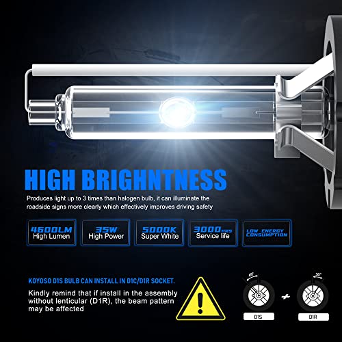 KOYOSO D1S HID Xenon Lampada per Fari 35W 6000K Lampadina di Ricambio Kit, Confezione da 2