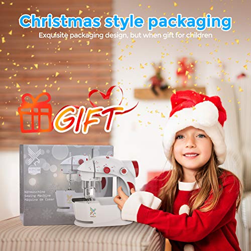 【Mini macchina da cucire per principianti】 Vieni con adattatore, pedale, taglierina incorporata e luce a led incorporata, è una buona macchina per principianti o bambini.