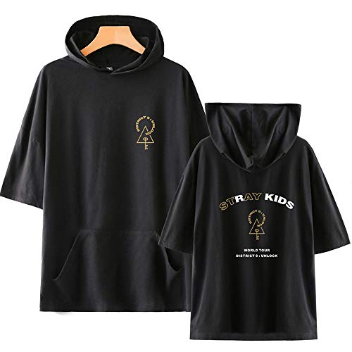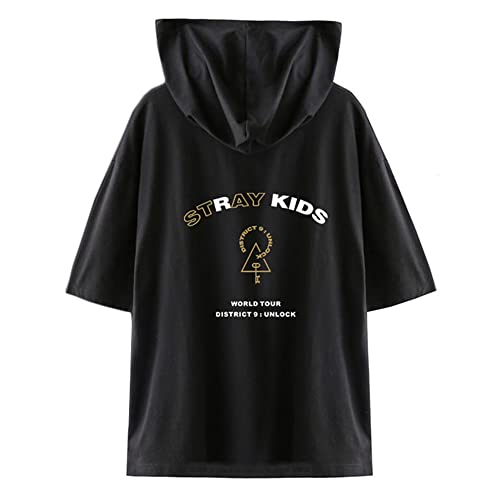 KPOP Stray Kids T-Shirt con Cappuccio District 9: Unlock Stampa Maglietta Hooded Pullover a Manica Corta Tops Estiva Camicetta per Uomini e Donne Hyunjin Felix Seungmin Jeongin Jisung Minho