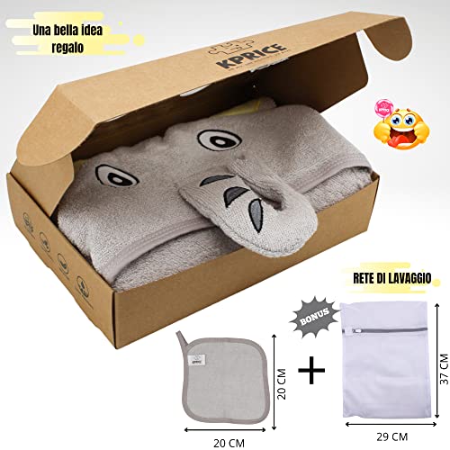 KPRICE - Accappatoio Neonato Con Cappuccio - Asciugamani di flanella 100% Bambu Organico - Asciugamano Neonato Bagnetto - Bambini Bambino Mesi Nascita (90x90 Elefante)